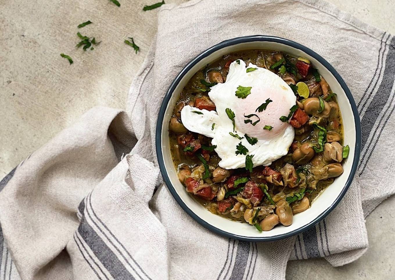 Instructions to make to make Habas con jamón en olla rápida y huevo escalfado