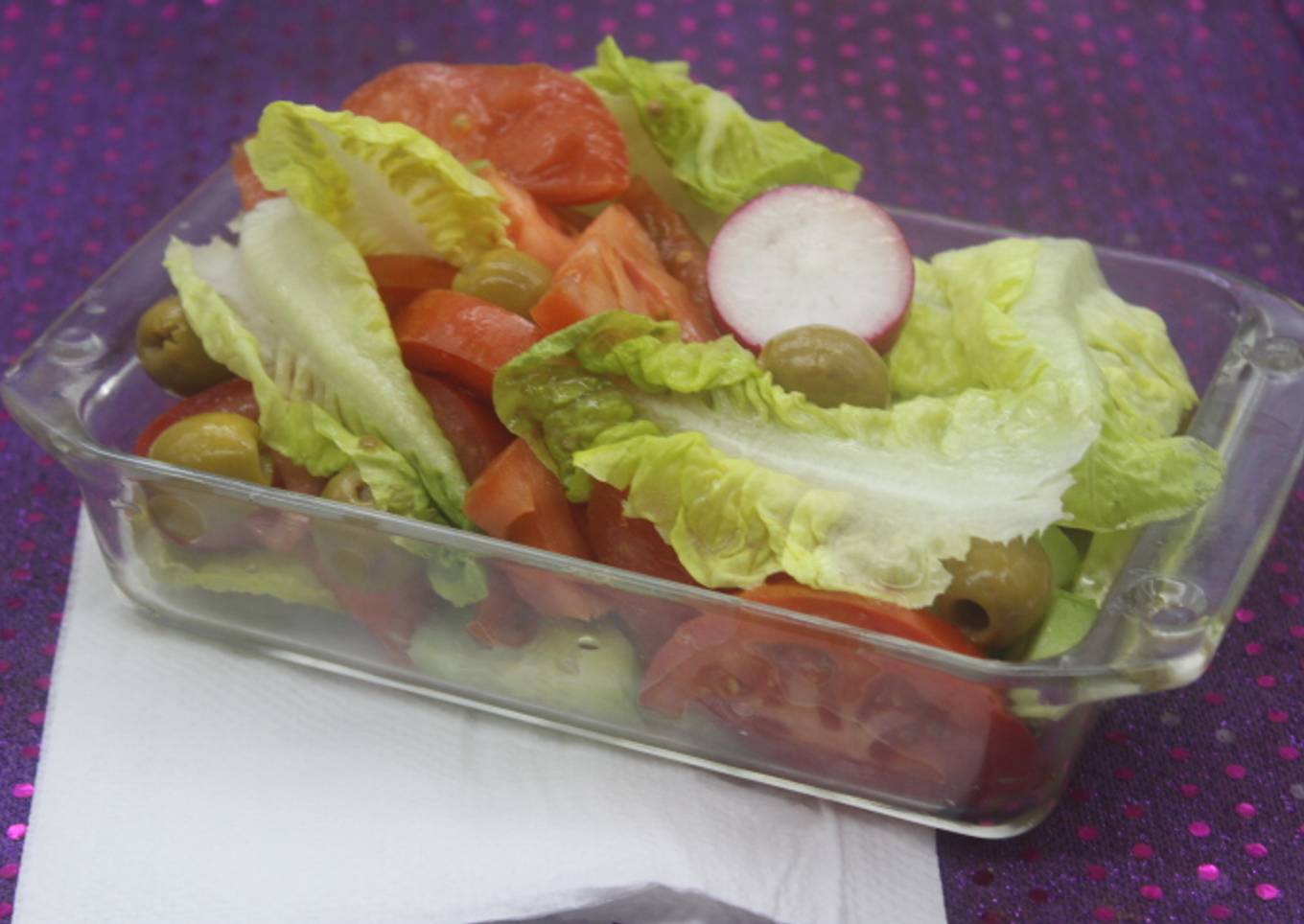 Ensalada de lechuga, tomate y rábanos