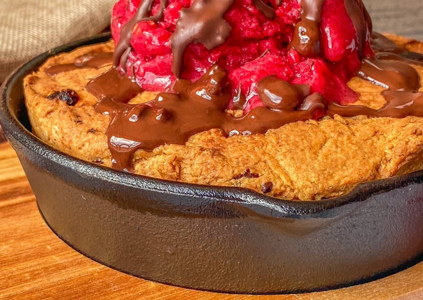 Skillet cookie saludable en Airfryer con helado de frambuesa