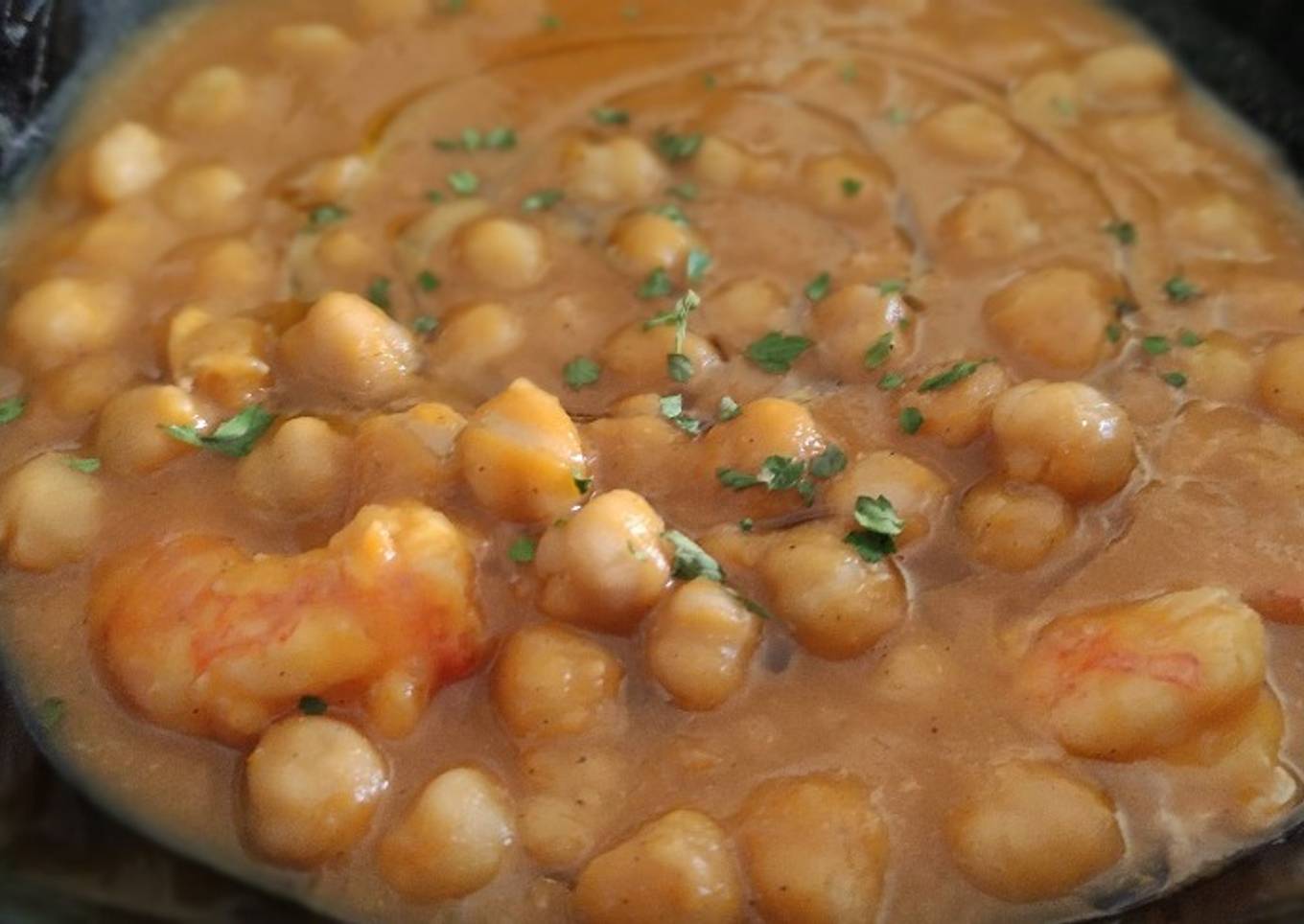 Hello everybody, I hope you're having an amazing day today. Today, I will show you a way to make a distinctive dish, Garbanzos con Gambones en Crema de Calabaza. It is one of my favorites. For mine, I will make it a little bit unique. This is gonna smell and look delicious.