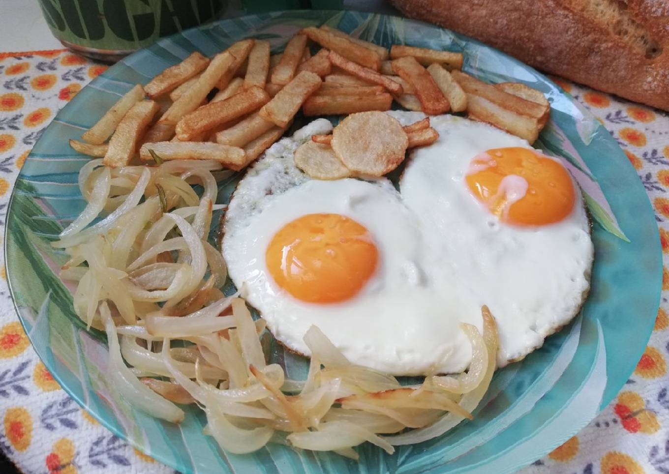 Huevos a la plancha con cebolla y patatas 🍳🥚🥔