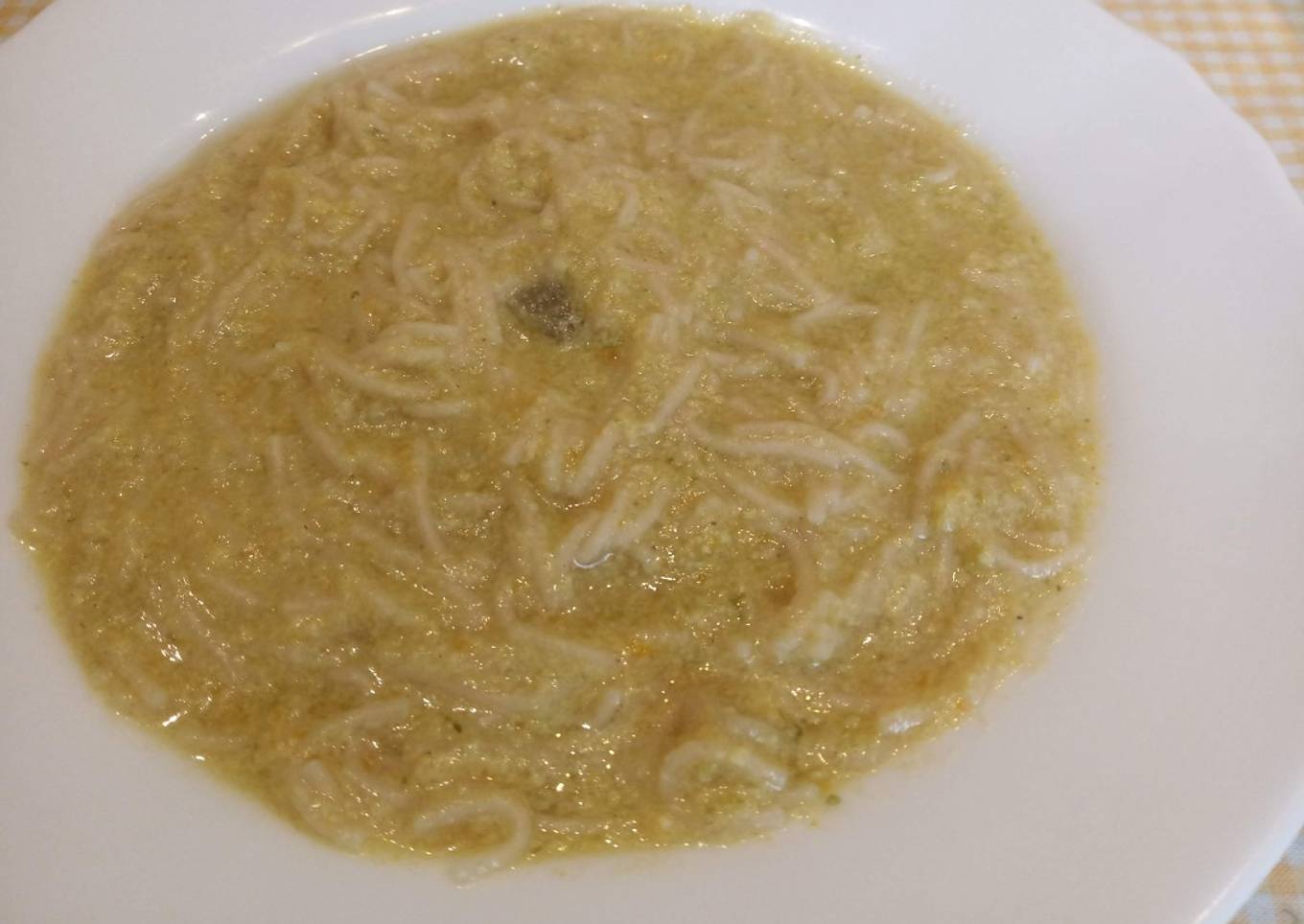 Sopa de verdura con fideos, huevo y queso