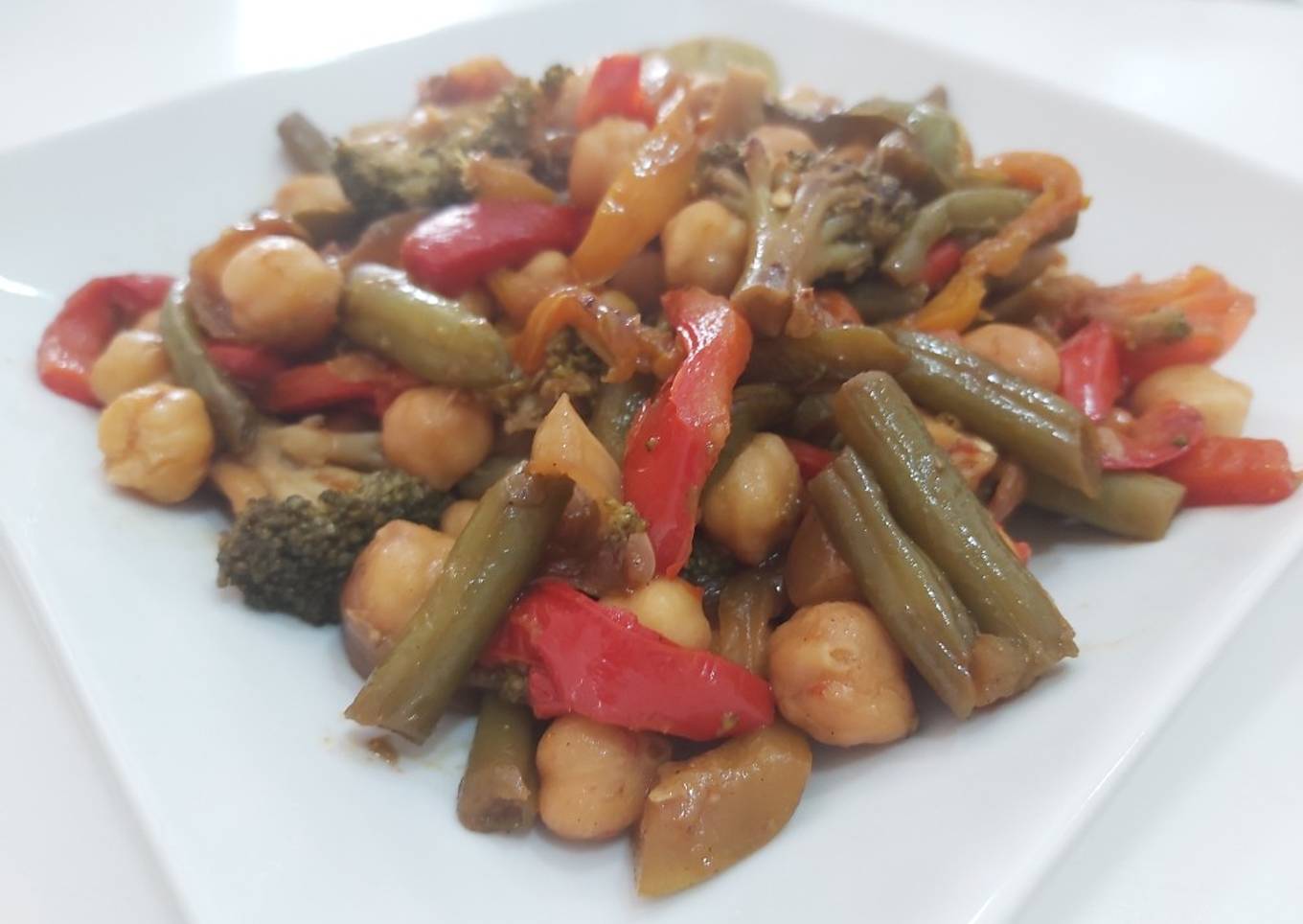 Hey everyone, it is Drew, welcome to my recipe site. Today, we're going to make a special dish, Wok de garbanzos con verduras al curry🥦🥘. It is one of my favorites. This time, I will make it a little bit tasty. This will be really delicious.