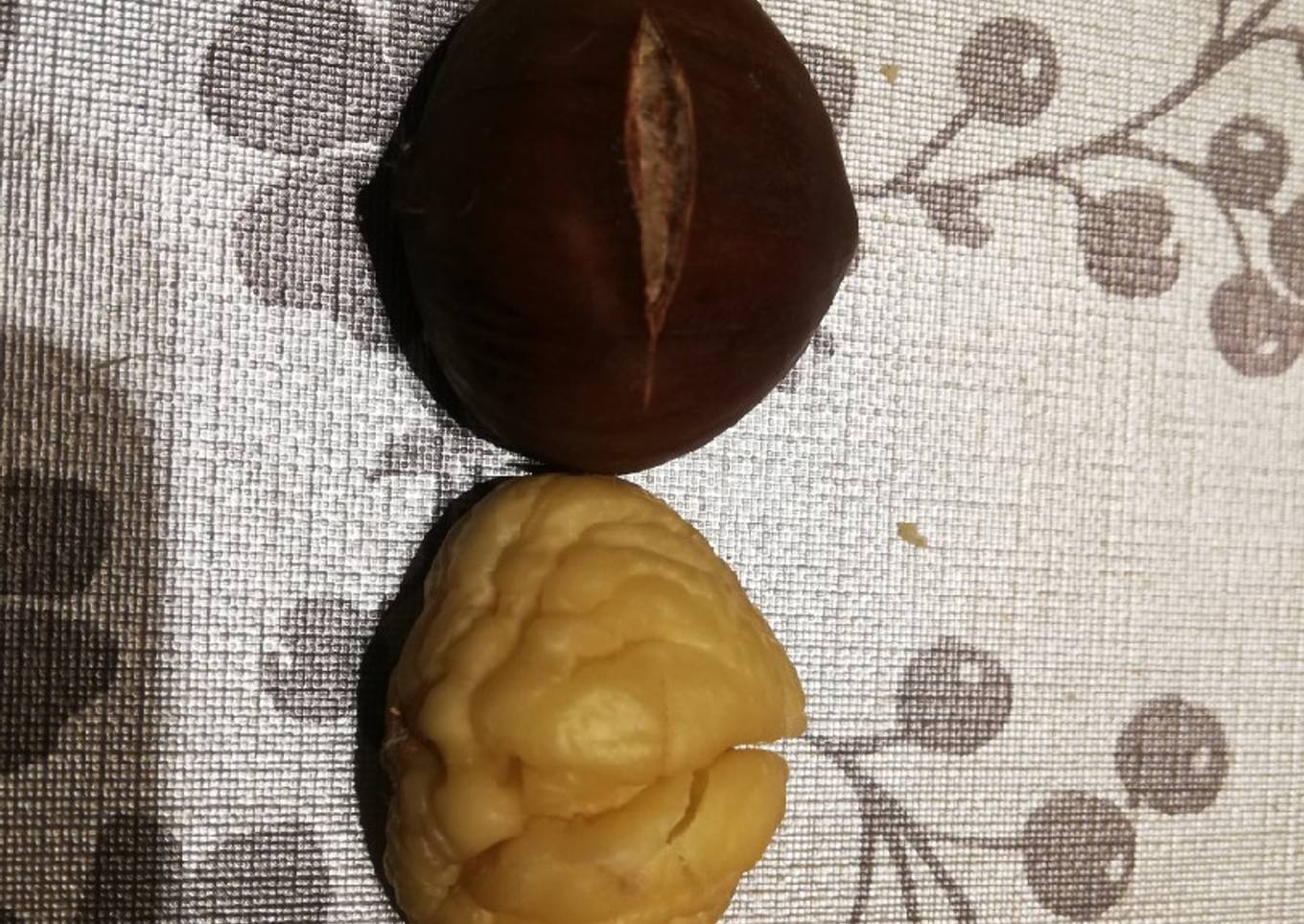 - Cogemos la cantidad de castañas que queramos y les hacemos un corte en la piel horizontalmente, como se ve en la foto.
