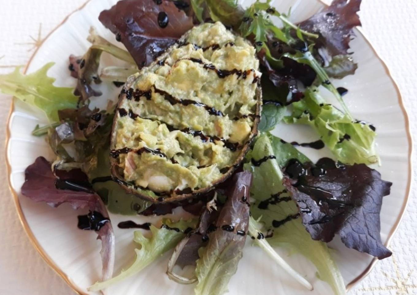 - Rellenar ambas partes del aguacate. Servir en un plato acompañado de brotes y decorar con vinagre de Módena. Se pueden añadir tomates cherry, queso fresco, mozzarella....