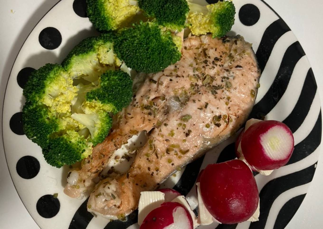 - Retira el salmón y pon el brócoli sobre el grill con una pizca de sal y calienta otros 3 minutos.