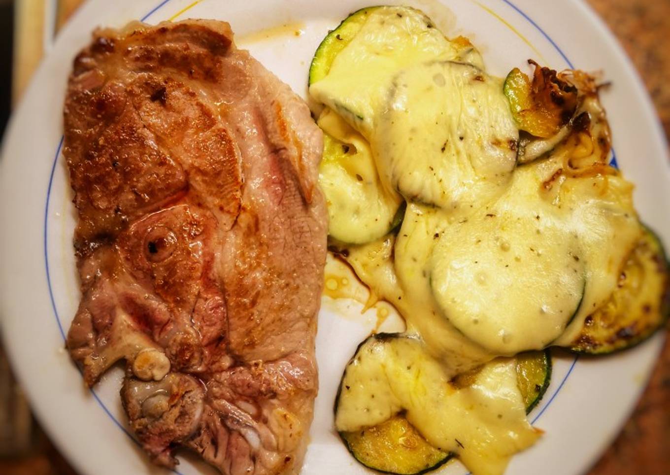 - Cuando tengamos el calabacín hecho, añadiremos un poco de sal, orégano y encima el queso, que cubra todas las rodajas. Bajamos el fuego al mínimo y no ponemos la tapa. El queso empezará a fundirse y se integrará en el calabacín.