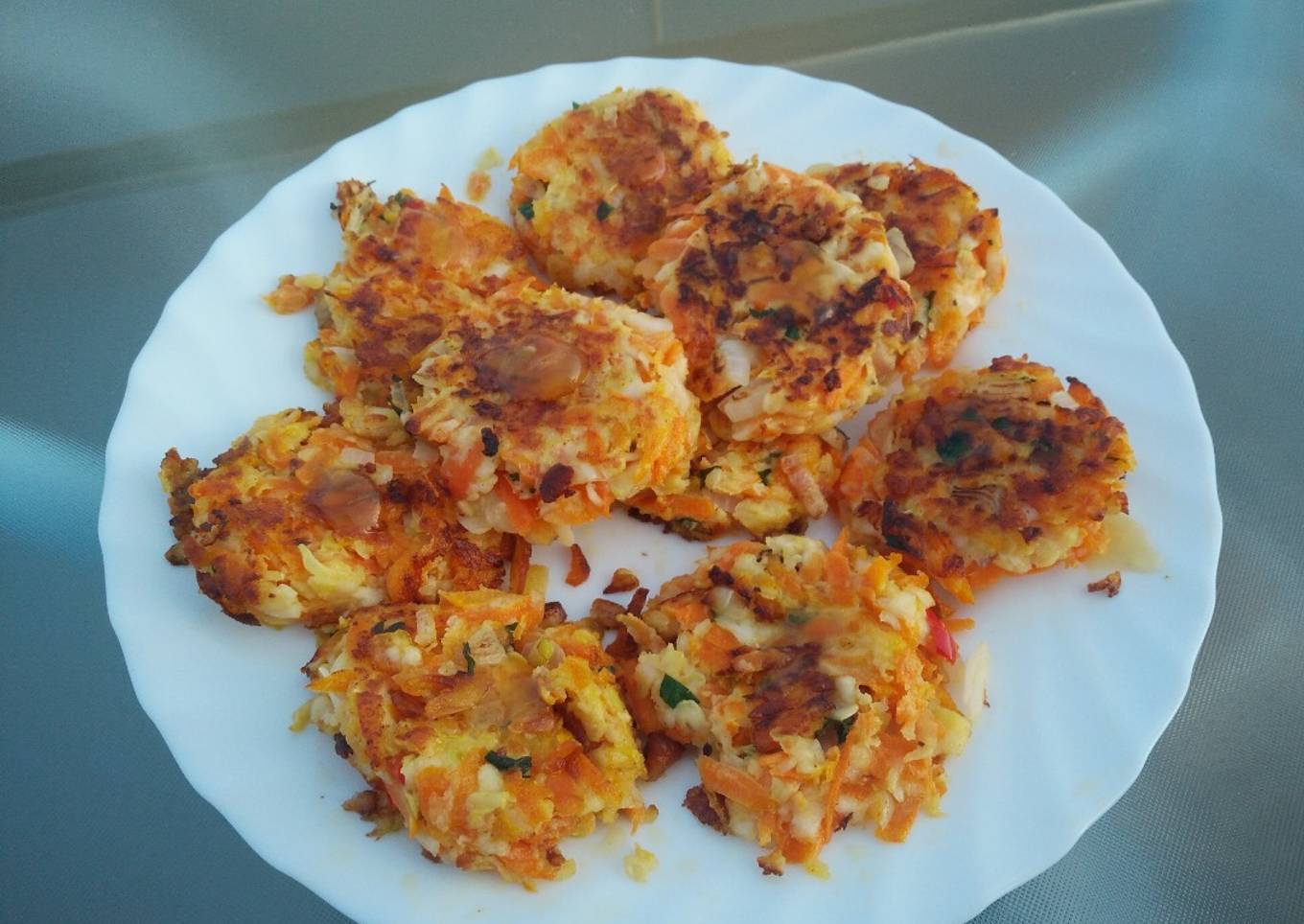 Tortitas de zanahorias, calabacín y queso halloumi