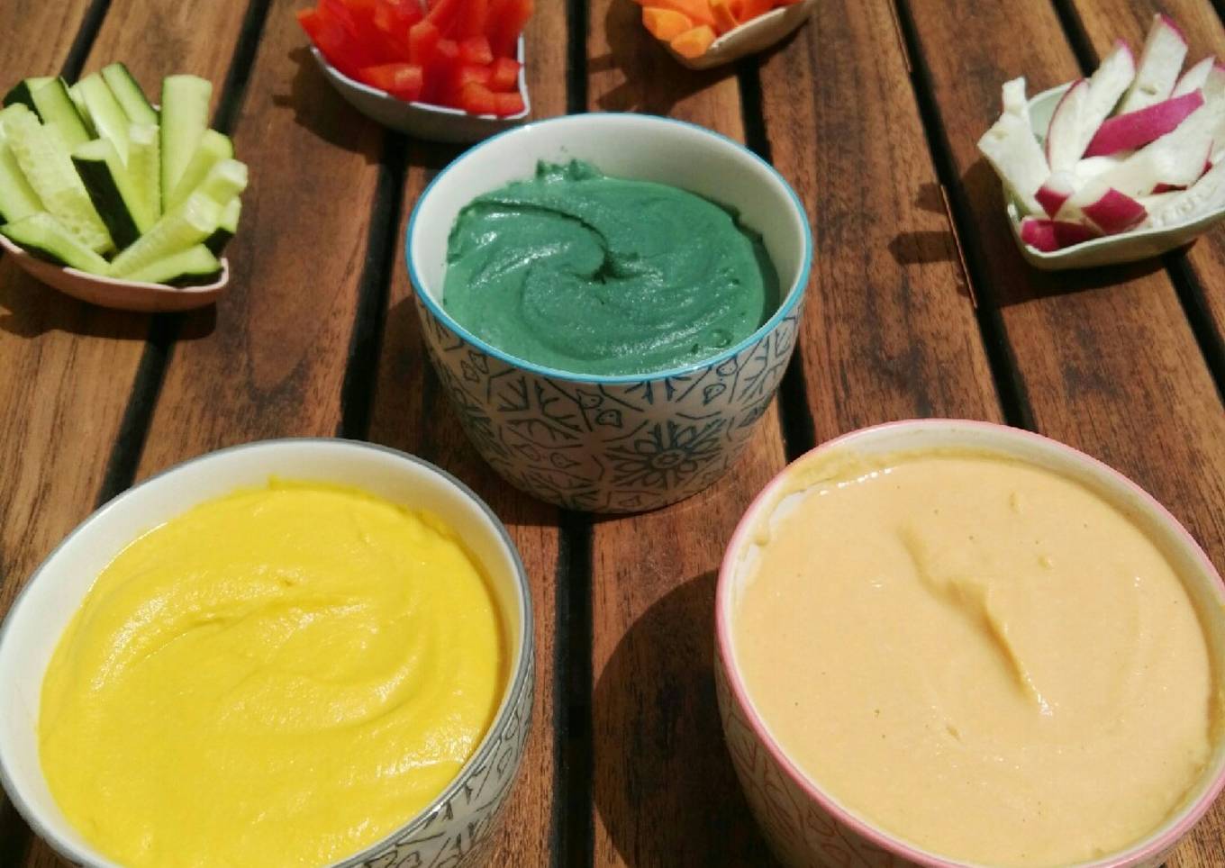 - Ya tenemos las tres variedades de hummus