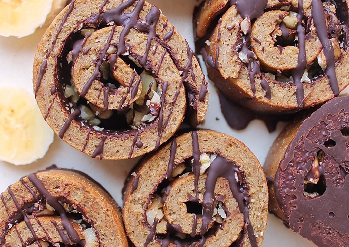 - Derretimos el chocolate y lo ponemos por dentro junto con los frutos secos dándole de nuevo la forma enrrollada. Con el chocolate que sobró, cubrí una parte y decoré con hilos por encima