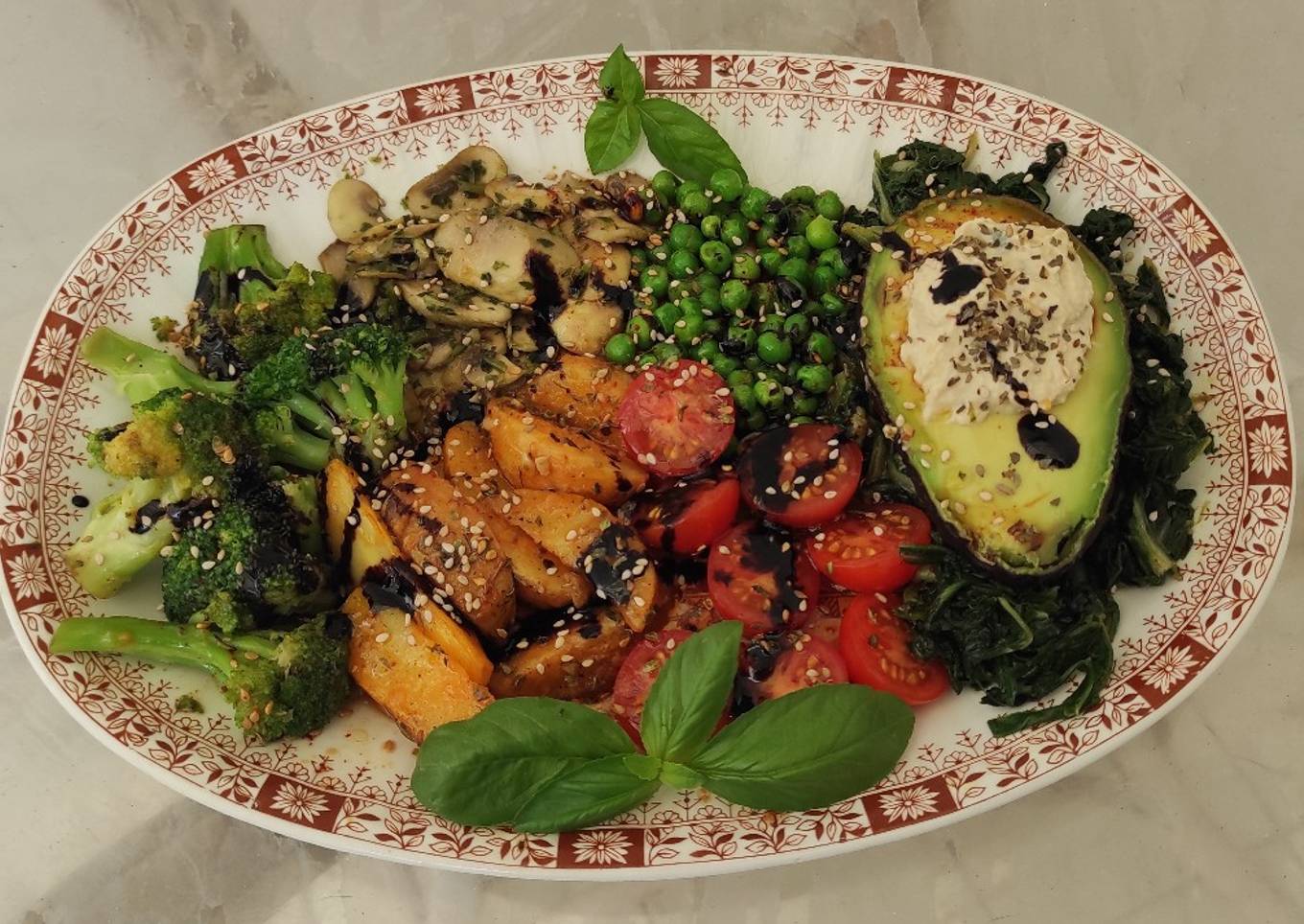 Hello everybody, it's me, Dave, welcome to my recipe site. Today, I'm gonna show you how to prepare a distinctive dish, Patatas, verduras, tomatitos y aguacate con hummus de berenjena. It is one of my favorites. For mine, I will make it a little bit tasty. This is gonna smell and look delicious.