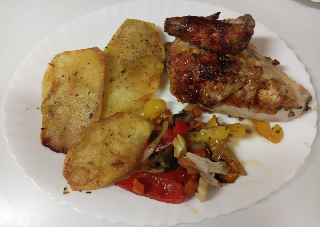 Ingredients and spices that need to be Get to make Pollo con verduras y patatas plancha: