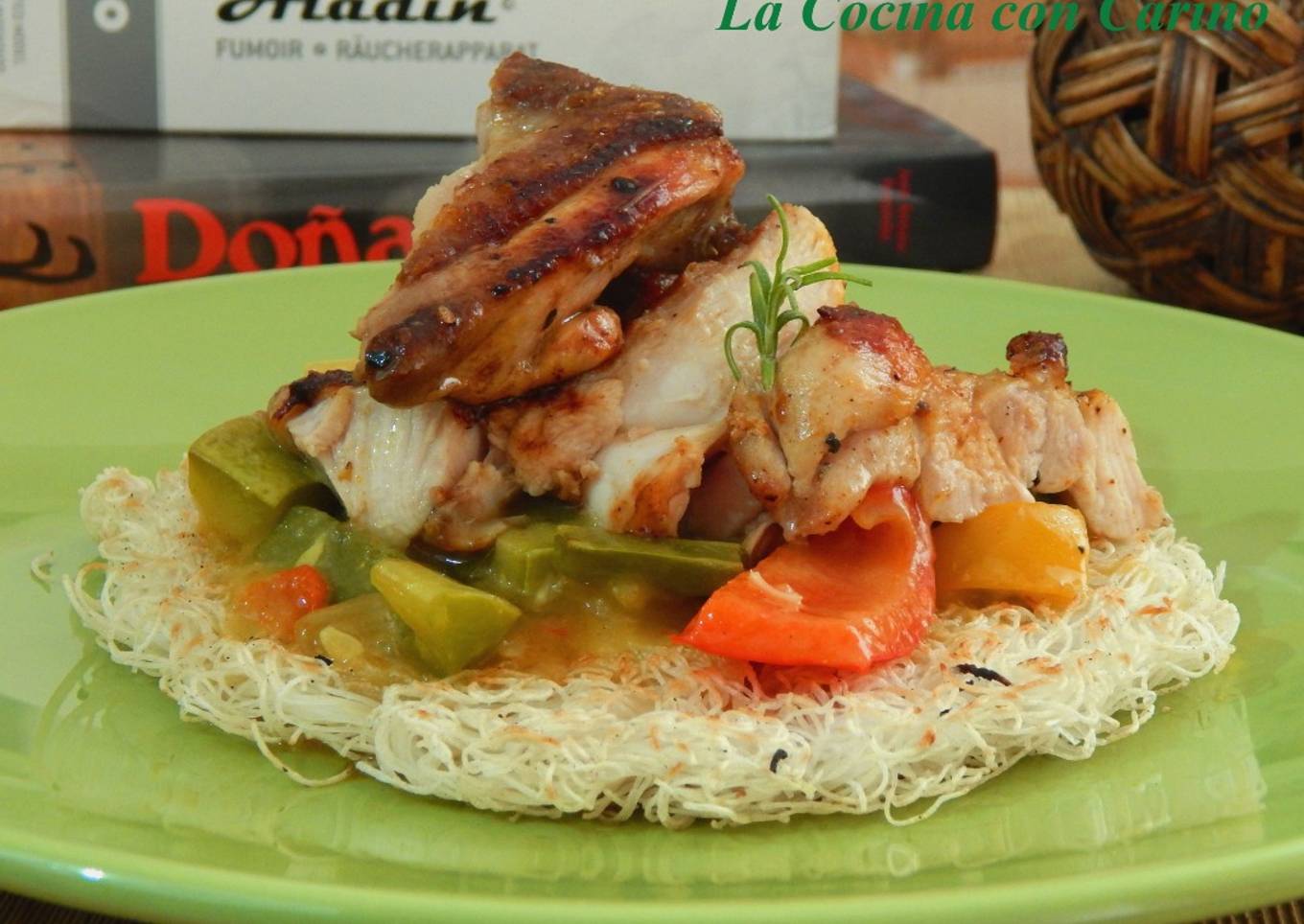 Hey everyone, I hope you are having an incredible day today. Today, I'm gonna show you how to prepare a special dish, Nidos crujientes de fideos de arroz con curry de verduras y pollo a la plancha. One of my favorites. For mine, I will make it a little bit tasty. This will be really delicious.