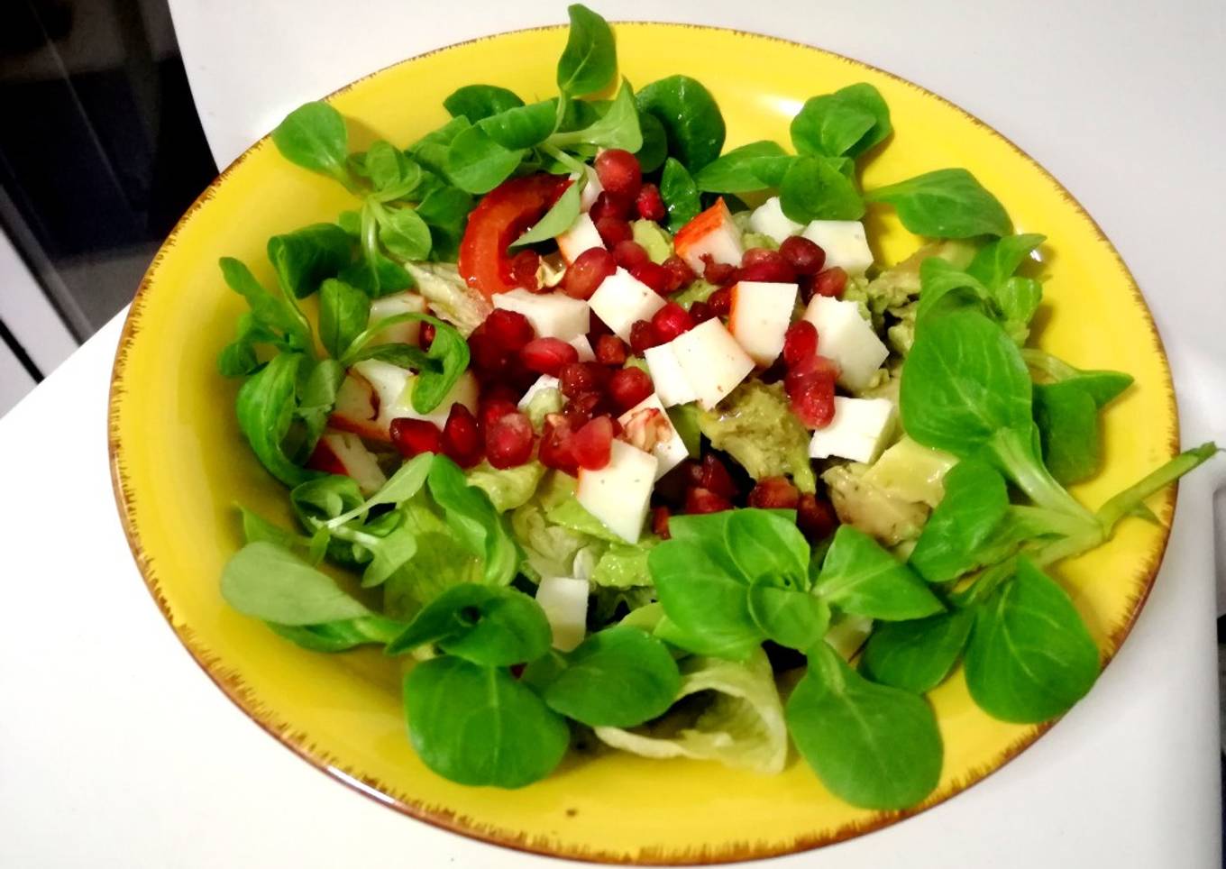 Hello everybody, it's me again, Dan, welcome to my recipe page. Today, I will show you a way to make a special dish, Ensalada de canónigos con aguacate, granada y queso. One of my favorites. For mine, I'm gonna make it a bit unique. This will be really delicious.