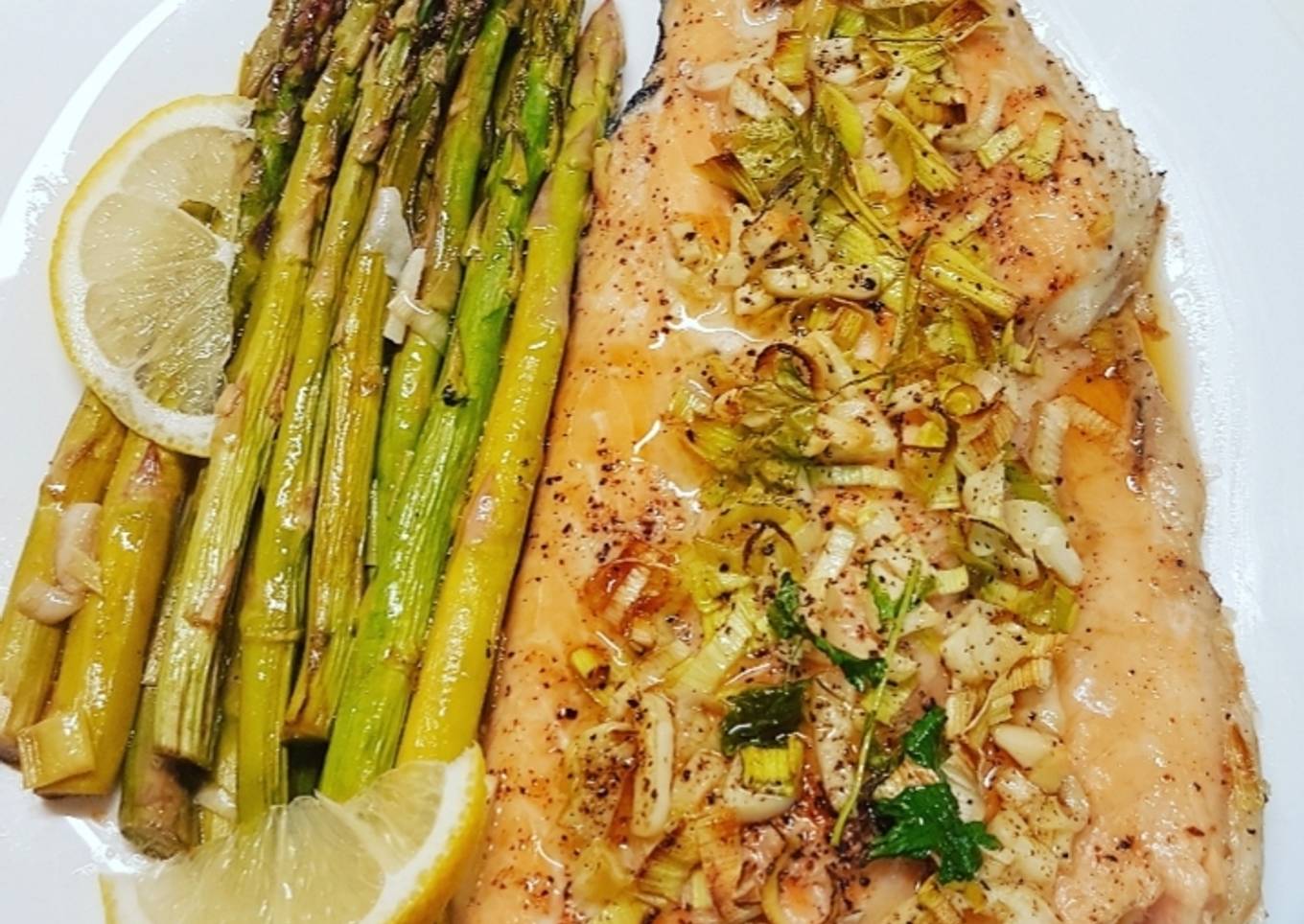 Salmón asado con espárragos trigueros